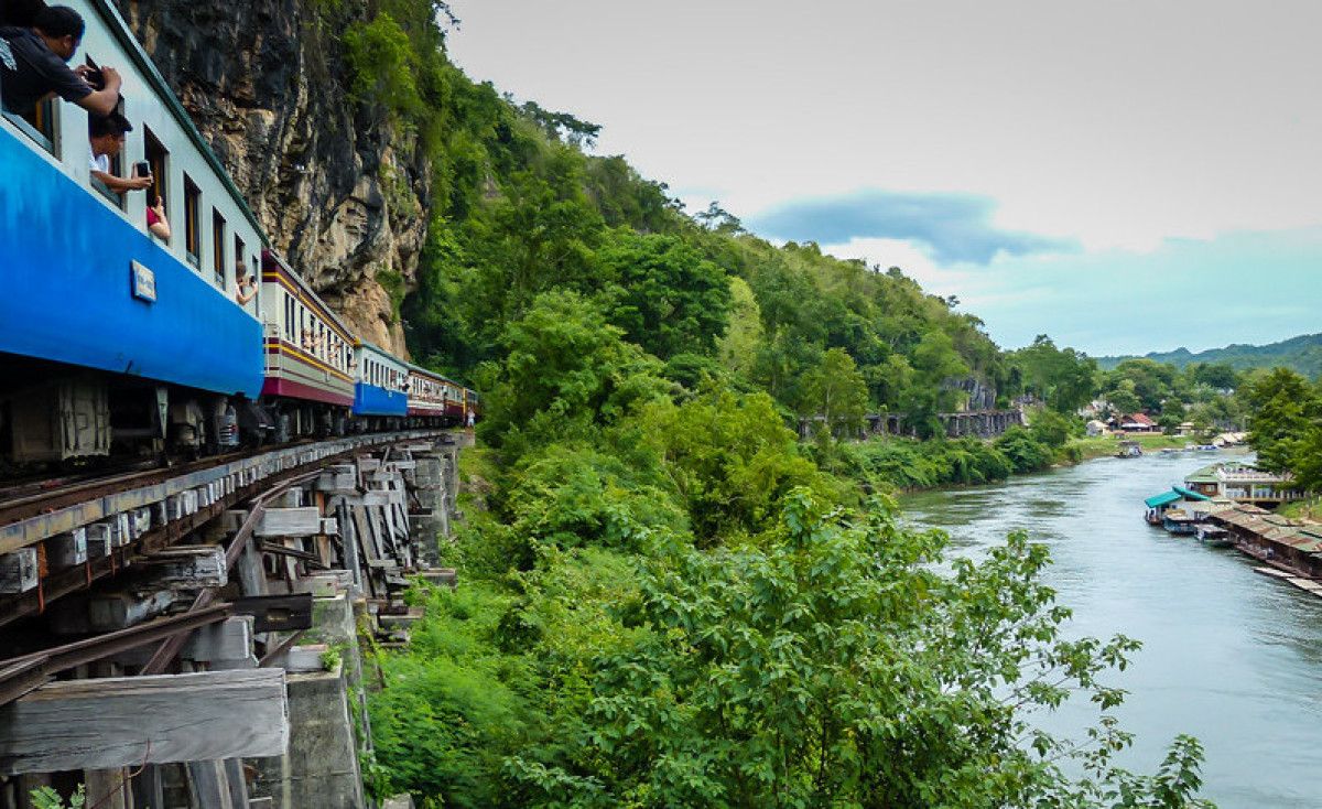 İkinci Dünya Savaşı sırasında inşa edilen bu çizgi, Kwai Irmağı kıyısındaki dar kayalık geçitlerden ve ahşap iskelelerden ilerliyor.