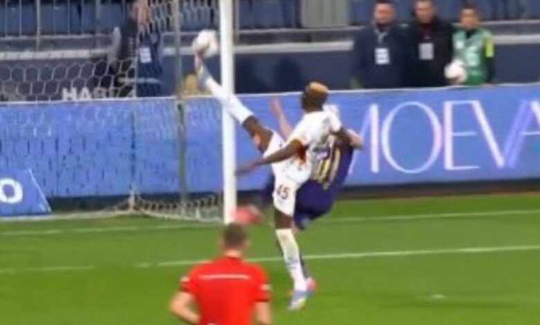 Osimhen’in önüne düşen topu ayağını kaldırarak önüne alışı rakibi Caner Erkin’i şaşkına çevirdi.