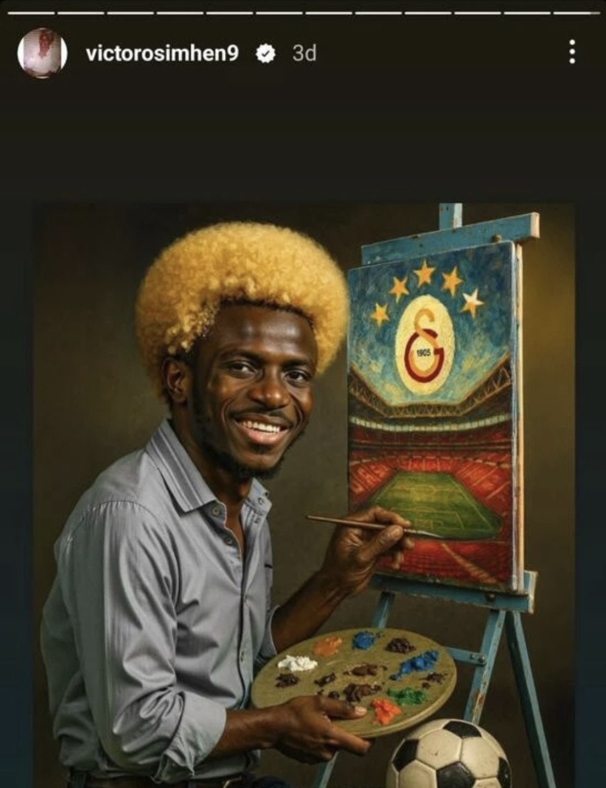 Ünlü ressam Bob Ross konsepti ile hazırlanan Victor Osimhen görseli, Nijeryalı golcü tarafından büyük beğeni aldı.