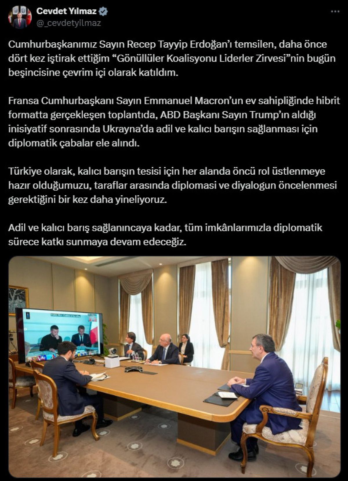 Adil ve kalıcı barış sağlanıncaya kadar, tüm imkanlarımızla diplomatik sürece katkı sunmaya devam edeceğiz.