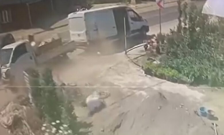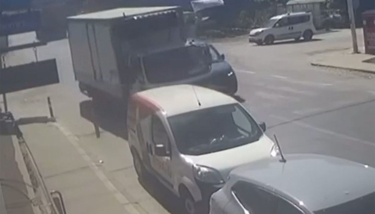 Kaza anı bir iş yerinin güvenlik kameralarınca kaydedildi.