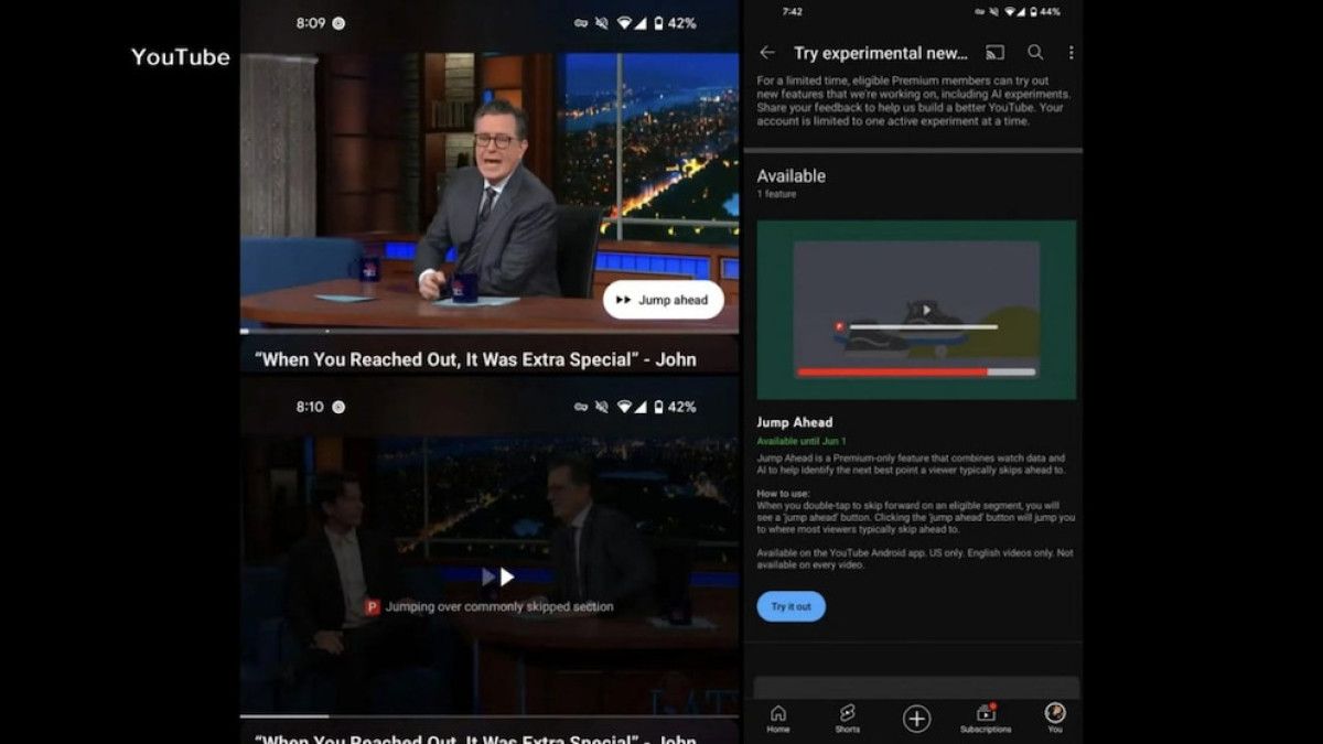 Daha evvel yalnızca taşınabilir ve web platformlarında bulunan yapay zeka takviyeli “Jump Ahead” (İleri Atla) özelliği, artık YouTube’un TV uygulamasında da kullanılabiliyor.