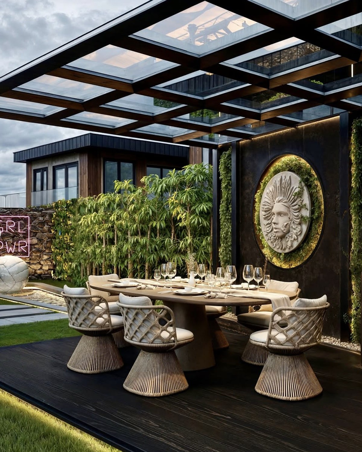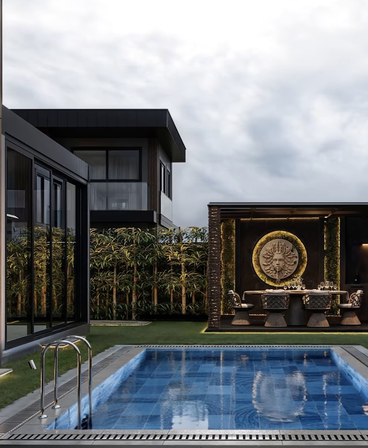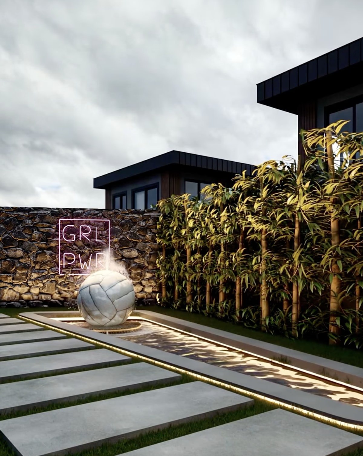 Evin sus havuzunda ise voleybol topu formunda bir heykel yer alacak.