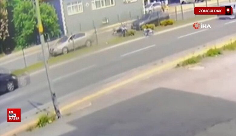 Zonguldak’ın Ereğli ilçesinde meydana gelen motosiklet kazasında, şoför takla atan motosikletten fırlayarak metrelerce savruldu.